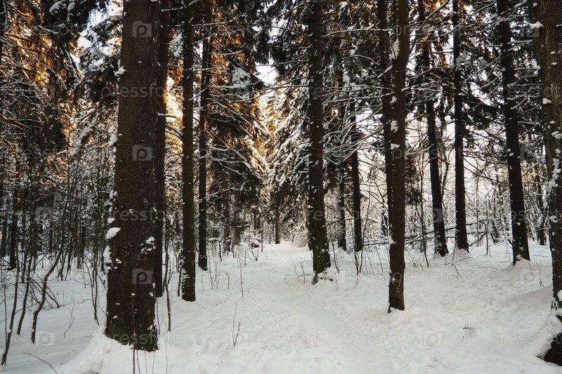 El Picea сосновая вечнозеленая древесина из семейства Сосовых. Вечнозеленые деревья. Обычная ёлка, или обыкновенная ёлка Picea abies, широко распространена в Северной Европе. Снежная зима хвойный лес
