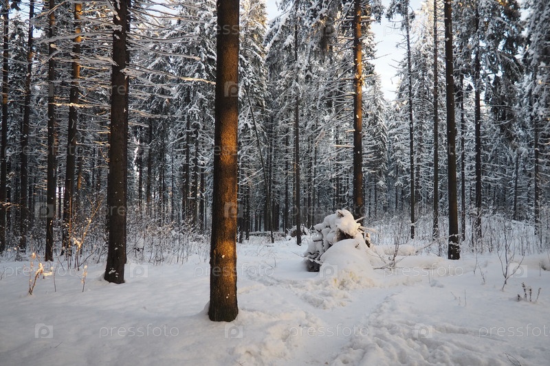 El Picea сосновая вечнозеленая древесина из семейства Сосовых. Вечнозеленые деревья. Обычная ёлка, или обыкновенная ёлка Picea abies, широко распространена в Северной Европе. Снежная зима хвойный лес