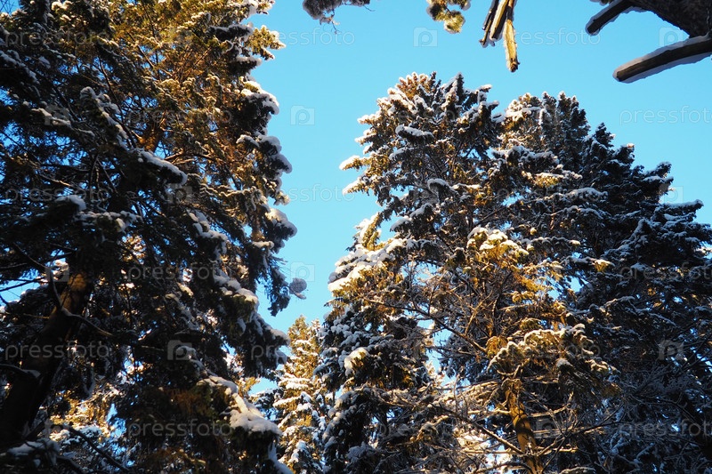 El Picea сосновая вечнозеленая древесина из семейства Сосовых. Вечнозеленые деревья. Обычная ёлка, или обыкновенная ёлка Picea abies, широко распространена в Северной Европе. Снежная зима хвойный лес