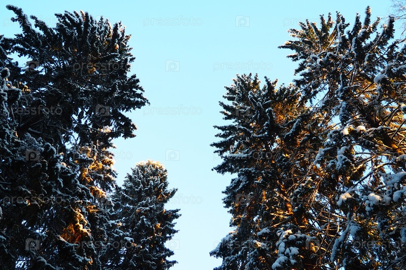 El Picea сосновая вечнозеленая древесина из семейства Сосовых. Вечнозеленые деревья. Обычная ёлка, или обыкновенная ёлка Picea abies, широко распространена в Северной Европе. Снежная зима хвойный лес