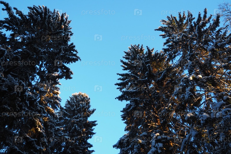 El Picea сосновая вечнозеленая древесина из семейства Сосовых. Вечнозеленые деревья. Обычная ёлка, или обыкновенная ёлка Picea abies, широко распространена в Северной Европе. Снежная зима хвойный лес