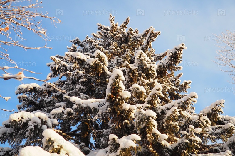El Picea сосновая вечнозеленая древесина из семейства Сосовых. Вечнозеленые деревья. Обычная ёлка, или обыкновенная ёлка Picea abies, широко распространена в Северной Европе. Снежная зима хвойный лес