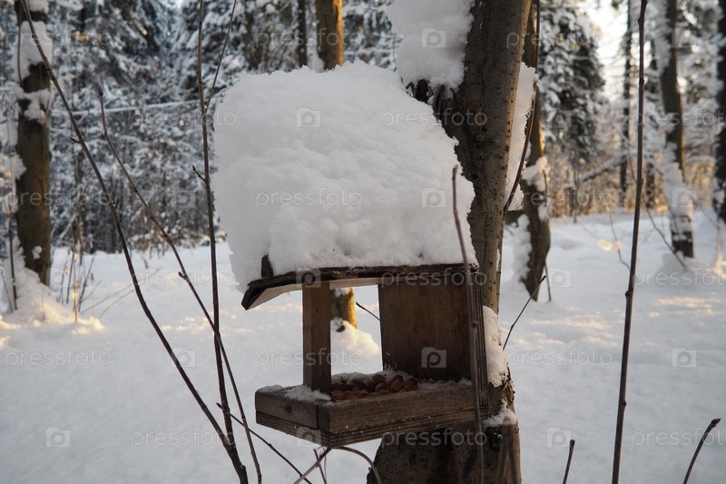 Кормушка для птиц— это устройство, размещаемое на открытом воздухе для подачи птицам корма. Кормление птиц. В самодельные кормушки для птиц подаются семена, хлеб или орехи. Морозный зимний день в лесу