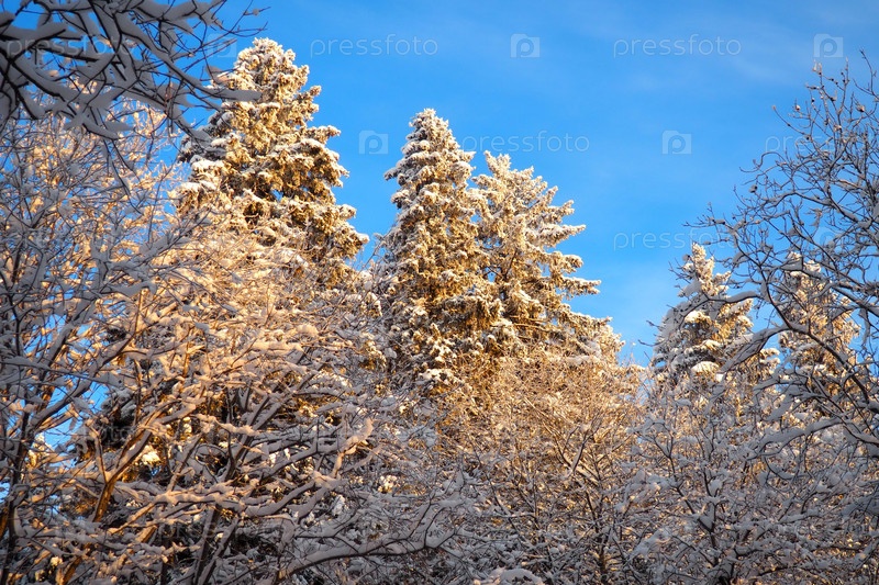 El Picea сосновая вечнозеленая древесина из семейства Сосовых. Вечнозеленые деревья. Обычная ёлка, или обыкновенная ёлка Picea abies, широко распространена в Северной Европе. Снежная зима хвойный лес