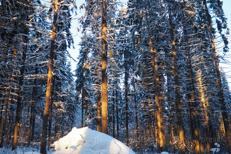 El Picea сосновая вечнозеленая древесина из семейства Сосовых. Вечнозеленые деревья. Обычная ёлка, или обыкновенная ёлка Picea abies, широко распространена в Северной Европе. Снежная зима хвойный лес