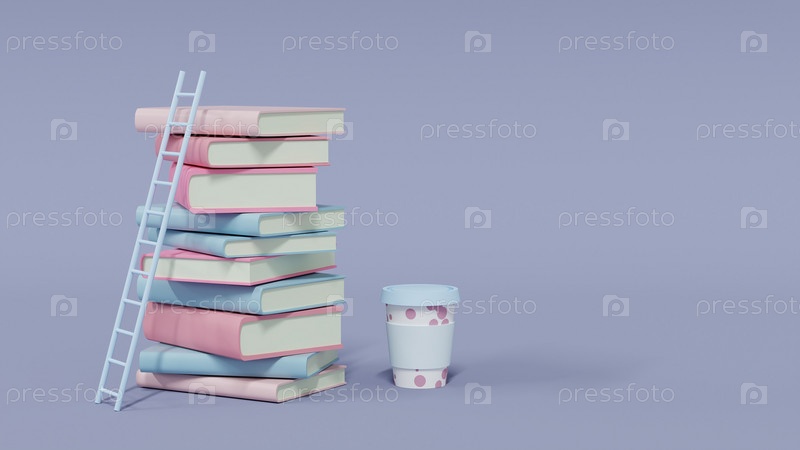 Стол цветных книг на синем фоне, 3d рендеринг