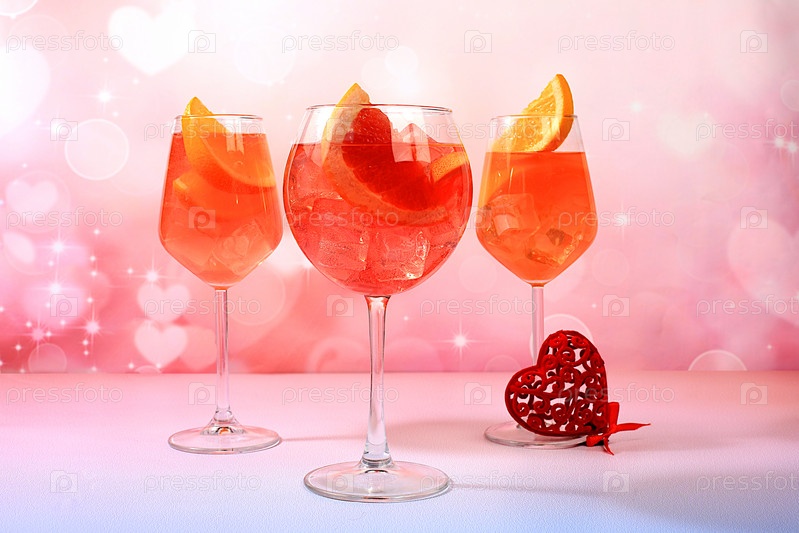 Праздничный алкогольный коктейль Aperol spritz в стаканах и любовных сердцах, концепция бара и День святого Валентина, спиртные напитки на вечеринке, реклама ресторана,