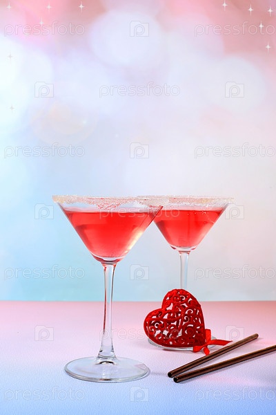 Праздничный алкогольный коктейль, красное мартини в стаканах и любовных сердечках, концепция бара и день святого Валентина, алкогольные напитки на вечеринке, реклама ресторана