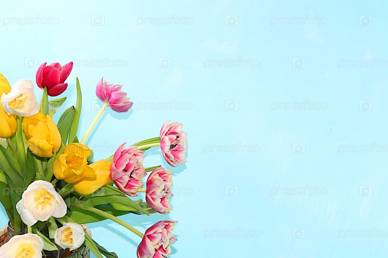 Цветочная композиция с тюльпанами. Минимальный шаблон для дизайна. Концепция Дня святого Валентина или Женского дня, Дня матери, баннера, поздравления любимому человеку с праздником