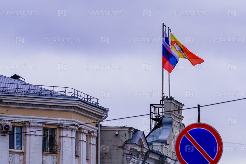 Флаг России и Воронежа на здании городской администрации. Воронеж