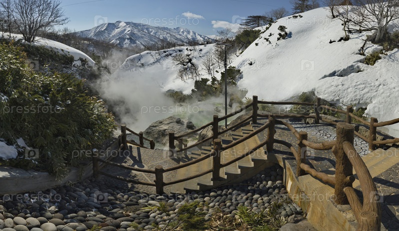Россия. Дальний Восток, Курильские острова. Изумрудные ванны на знаменитой Кипящей реке острова Итуруп. Температура воды в термальном источнике достигает 80 градусов
