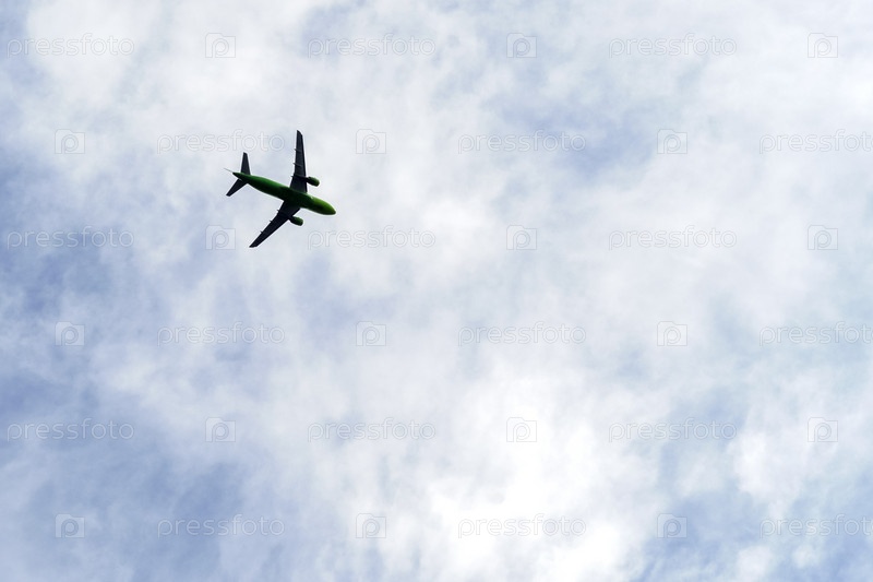 15.09.2023. Россия, Московская область, Ленинский район, г. Видное. Самолет был сфотографирован на фоне облачного неба. Нижняя часть фюзеляжа окрашена в зеленый цвет. Место для надписи