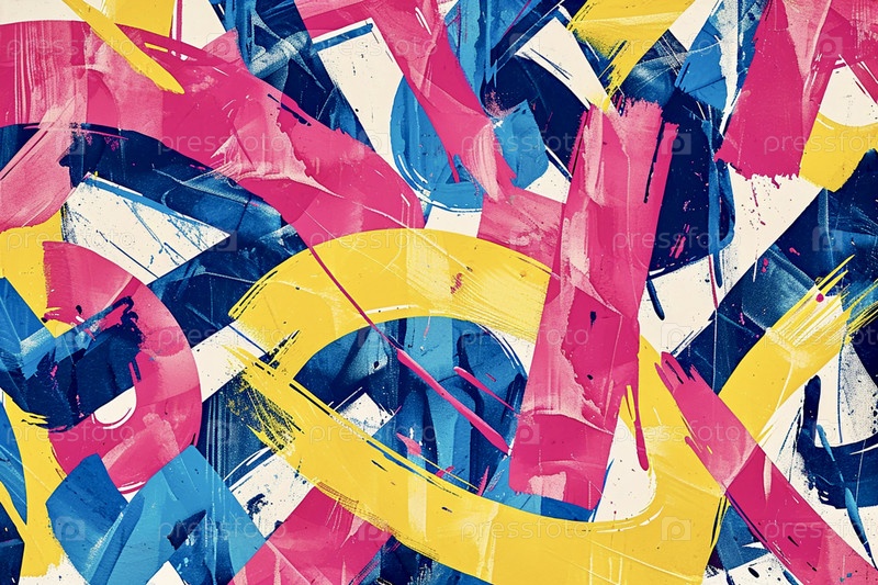 Желтые, синие, голубые и розовые акварельные мазки, абстракция