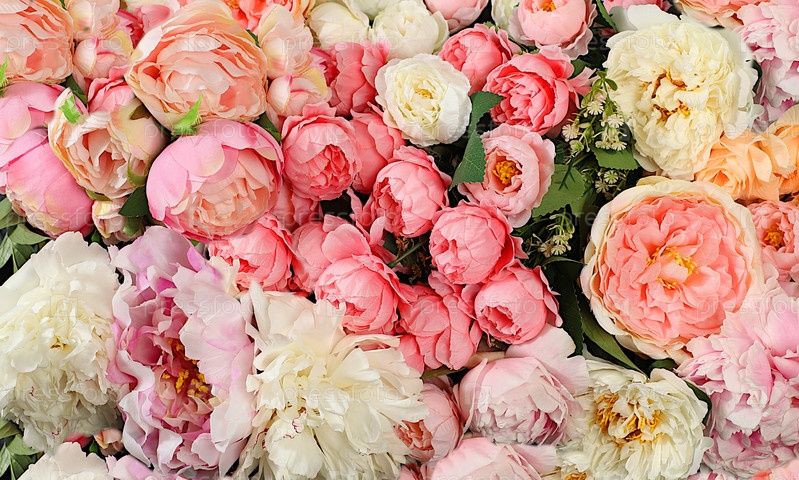 Красивая цветочная открытка, весенний баннер и фон с пионами, розами, лютиками. Цветочная композиция ко Дню матери или Женскому дню, концепция праздника с цветами, избирательный фокус