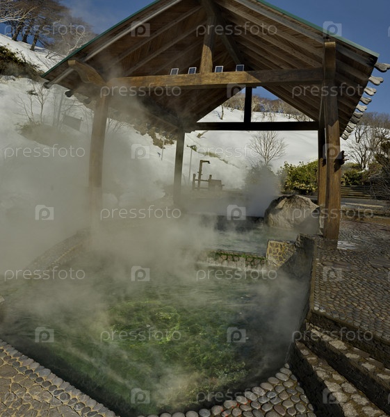 Россия. Дальний Восток, Курильские острова. Изумрудные ванны на знаменитой Кипящей реке острова Итуруп. Температура воды в термальном источнике достигает 80 градусов