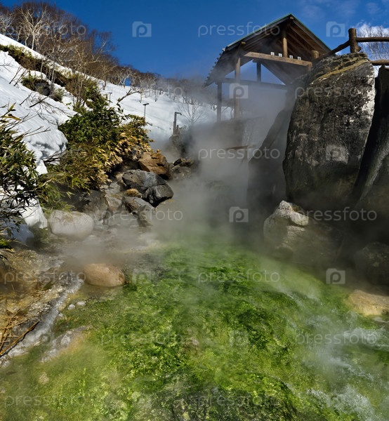 Россия. Дальний Восток, Курильские острова. Изумрудные ванны на знаменитой Кипящей реке острова Итуруп. Температура воды в термальном источнике достигает 80 градусов