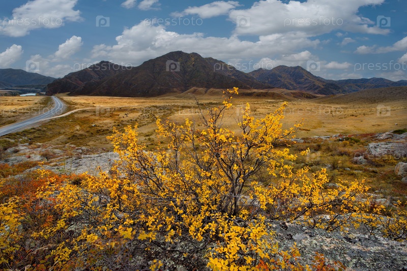 Россия. Юг Западной Сибири. Горный Алтай. Разноцветные каменистые россыпи в долине реки Катуни вдоль Чуйского тракта