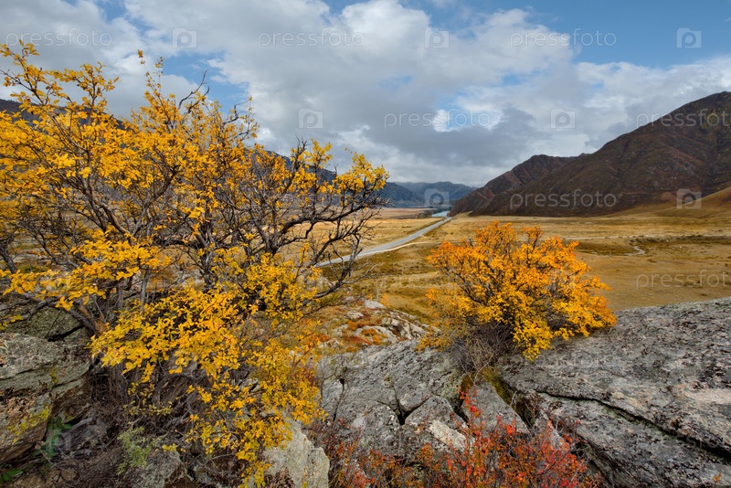 Россия. Юг Западной Сибири. Горный Алтай. Разноцветные каменистые россыпи в долине реки Катуни вдоль Чуйского тракта