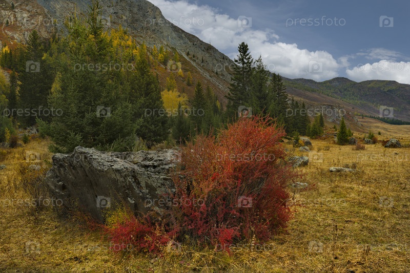 Россия. Юг Западной Сибири. Горный Алтай. Разноцветные каменистые россыпи в долине реки Катуни вдоль Чуйского тракта