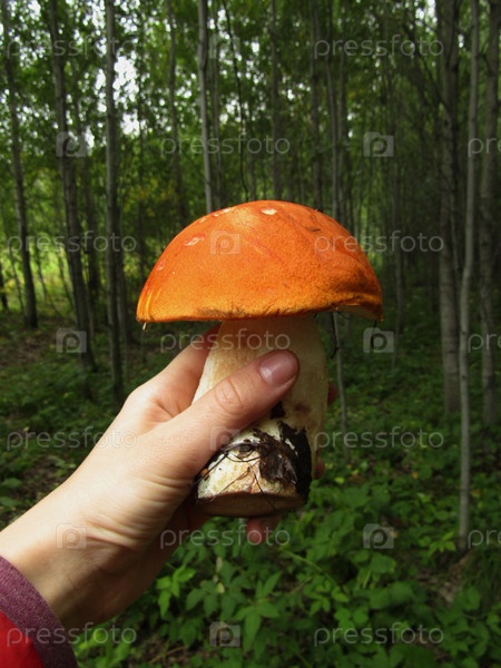 Гриб Подосиновик в руке