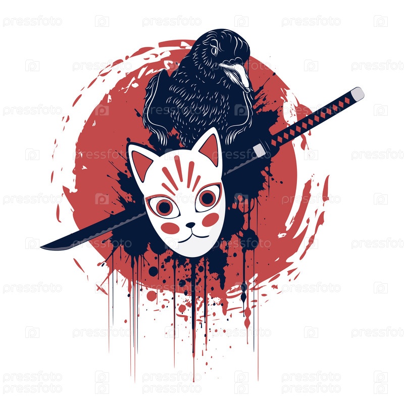 Ворона, маска кицунэ и катана