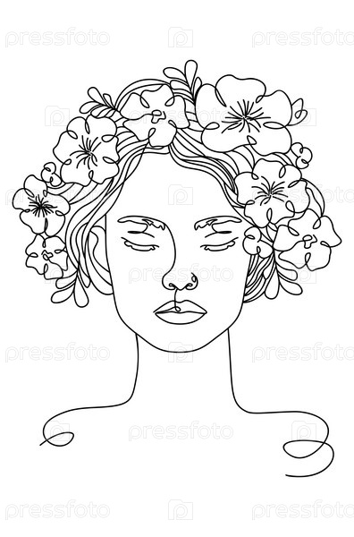 Линия искусства женщина с цветами на голове