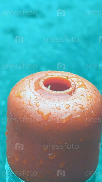 Капли воды на оранжевом конусе. Закругленная вершина дорожного конуса изготовлена из оранжевого пластика с отверстием посередине. Он показывает капли воды после дождя