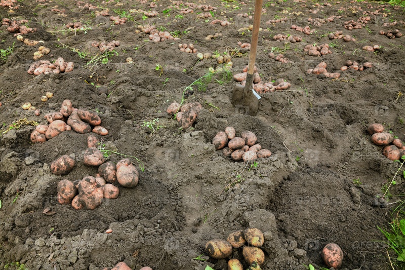 Свежий выкопанный картофель в поле. Урожай