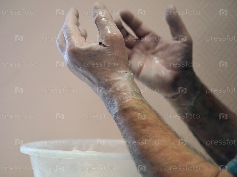 Руки в теплом парафине, на руках проводится тепловая терапия. Термические процедуры при артритах и артрозах в санатории. Идея медицины и здоровья