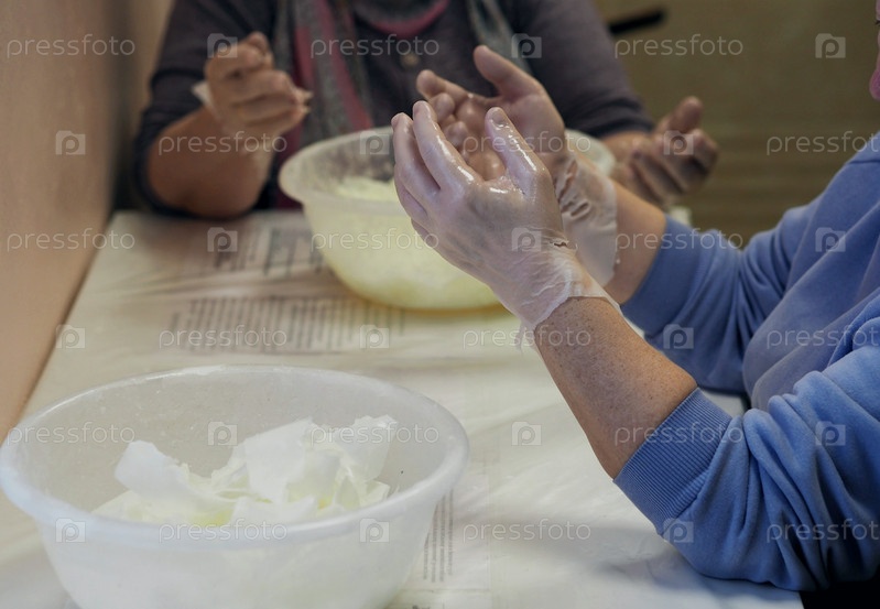 Руки женщины в теплом парафине, получающие термотерапию на руках. Лечебные тепловые процедуры при артритах и артрозах в санатории. Идея медицины и здоровья
