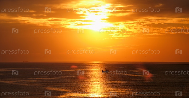 Морской закат с лодками