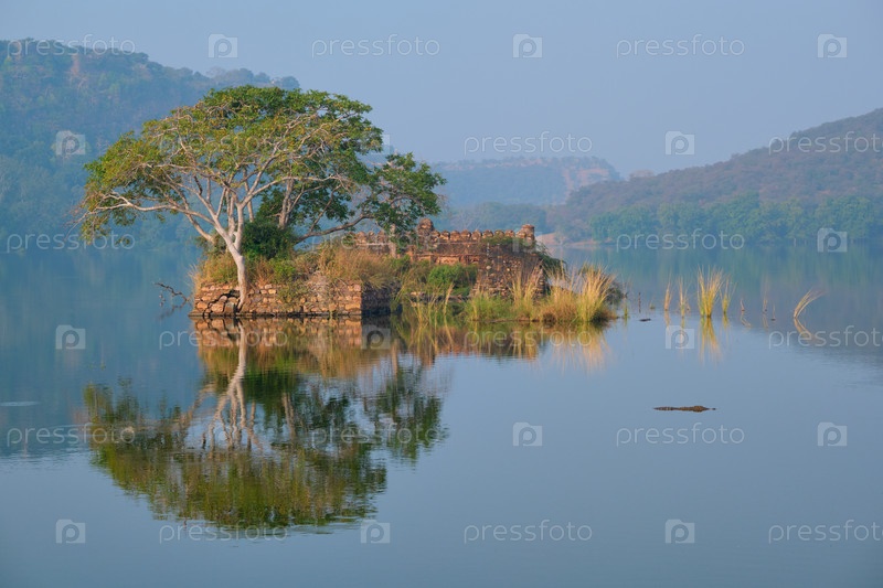 Безмятежное утро на озере Падма Талао. Национальный парк Рантхамбор, Раджастхан, Индия