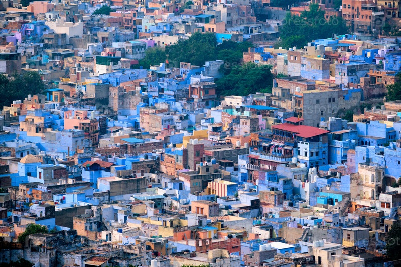 Вид с воздуха на Джодхпур Голубой город. Джодфур, Раджастан, Индия