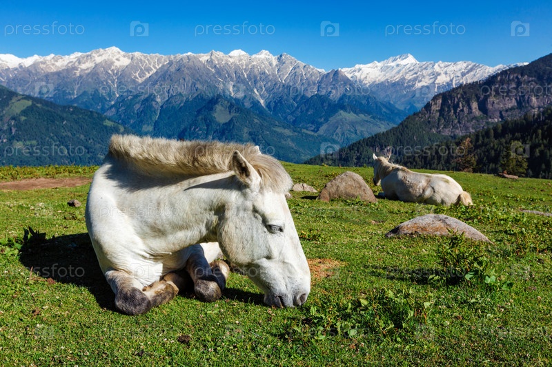 Лошади в горах. Химачал-Прадеш, Индия