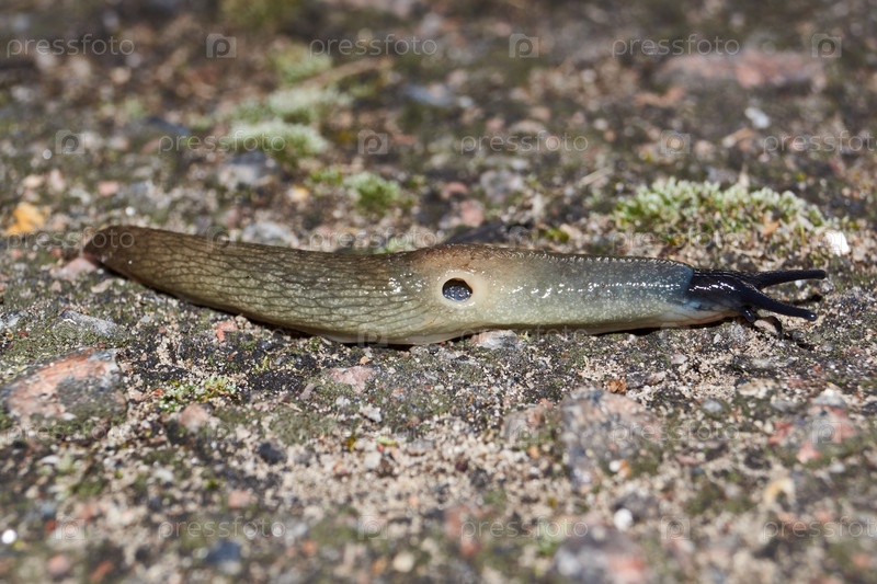 Слизень Krynickillus melanocephalus ползает по дорожкам в саду Слизень Krynickillus melanocephalus наземный брюшноногий моллюск отряда легочных улиток семейства Agriolimacidae