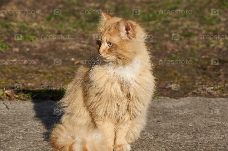 Кот гуляет во дворе дома. Весна