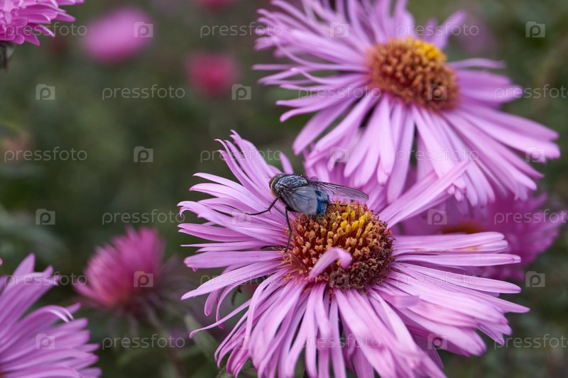 Голубая мясная муха (лат. Calliphora uralensis) собирает нектар из цветов Синяя мясная муха двукрылое насекомое семейства синих или зеленых мясных мух (семья Calliphoridae)