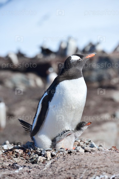 Пингвин папа и детеныш.Субантарктический пингвин Нелетающие птицы