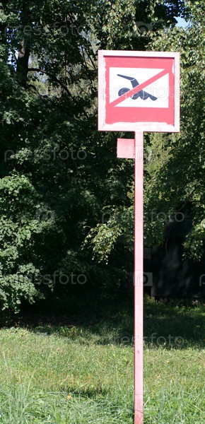 Запрещающий знак плавания в летний солнечный день