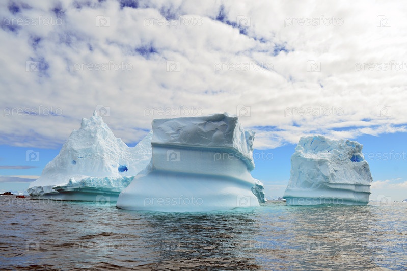 Волнистые ледяные айсберги в водах Южного океана