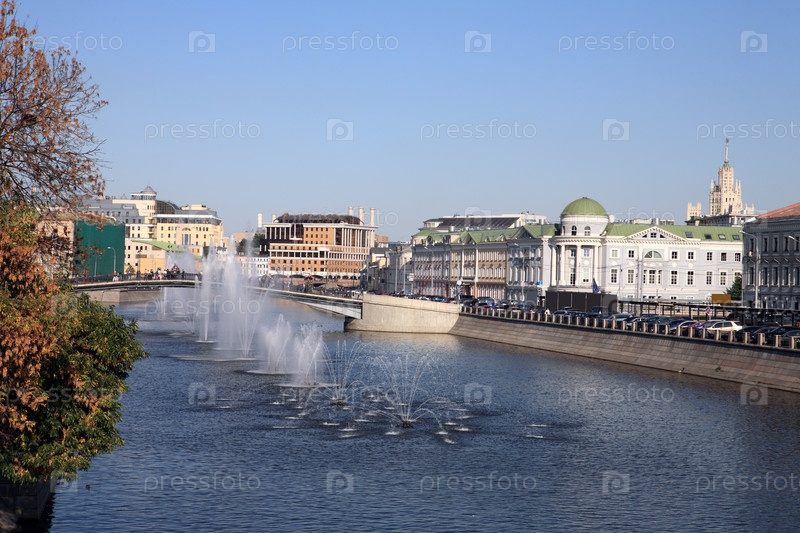 Много фонтанов на реке