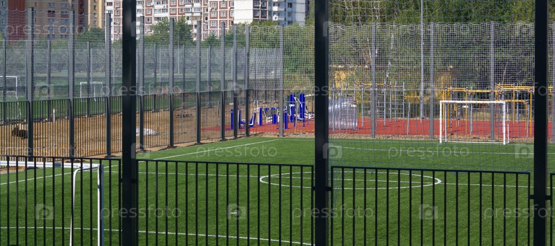 Футбольное поле возле забора в солнечный день