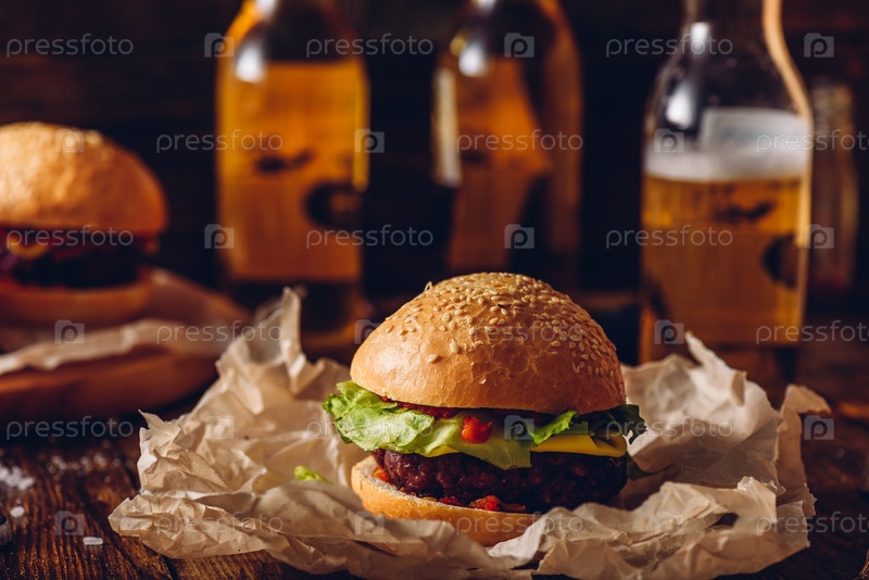 Гамбургер на крафт-бумаге