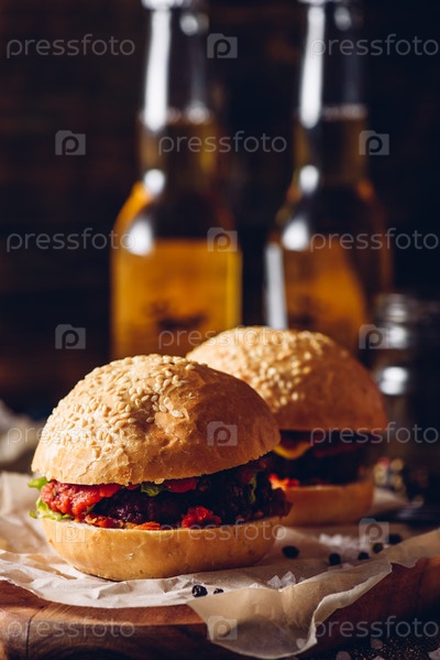 Два чизбургера на разделочной доске