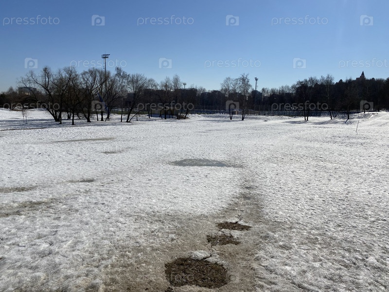 Зима в городском парке в сухой солнечный день
