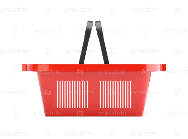 3D иллюстрация красной пустой пластиковой корзины для покупок. изолированные на белом фоне. вид со стороны