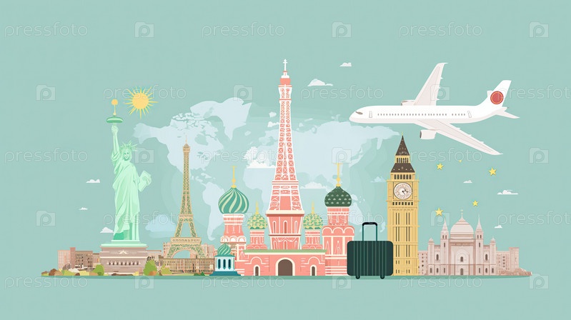 Концепция путешествия с известными достопримечательностями