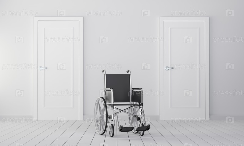Инвалидная коляска в комнате с двумя закрытыми дверями