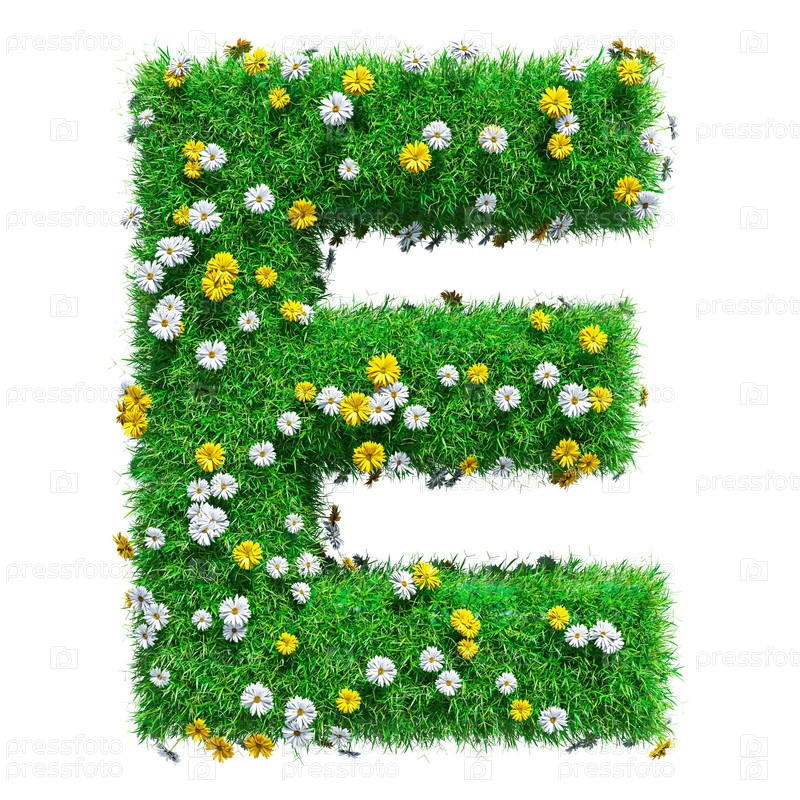 Буква Е из зеленой травы и цветов