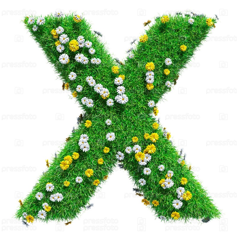 Буква X - зеленая трава и цветы